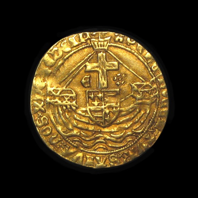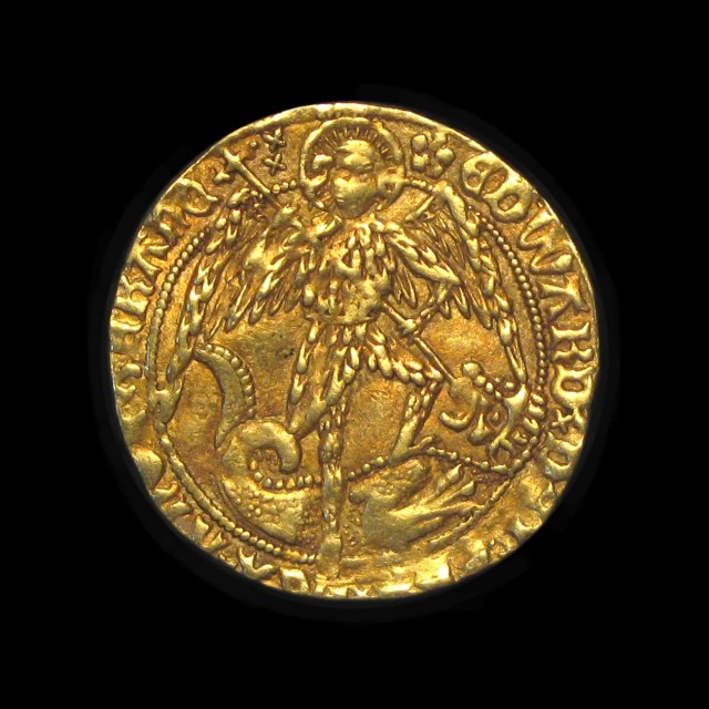 London, St. Micheal spearing the dragon, R. ship with E and rose beside mast