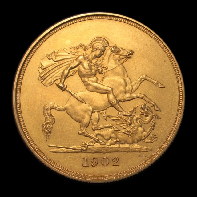 1902, matt proof, bare head right, rev. St. George slaying dragon, (S.3966)