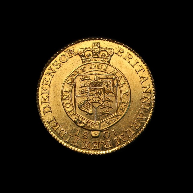 1801, sixth laureate head right, rev. crowned shield in garter, (S.3736)