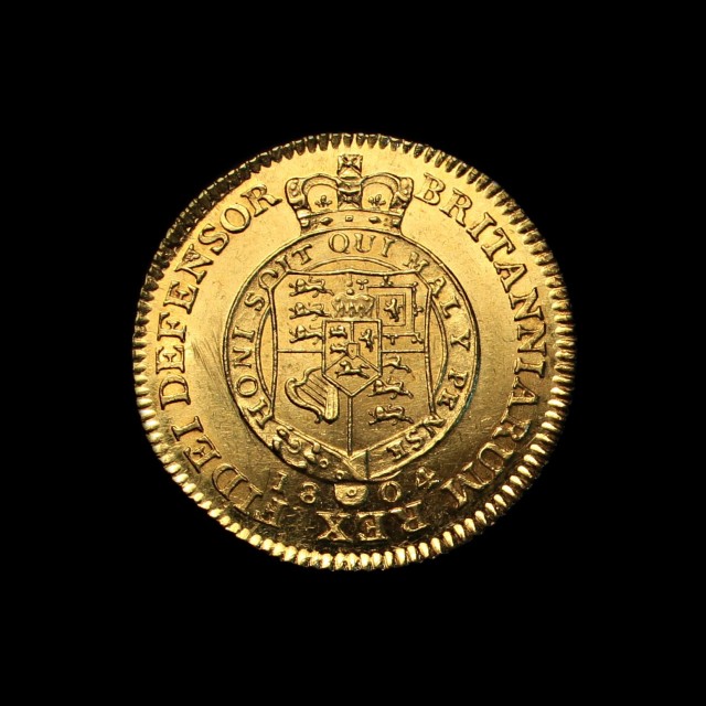 1804, seventh laureate head right, rev. crowned shield in garter, (S.3737)