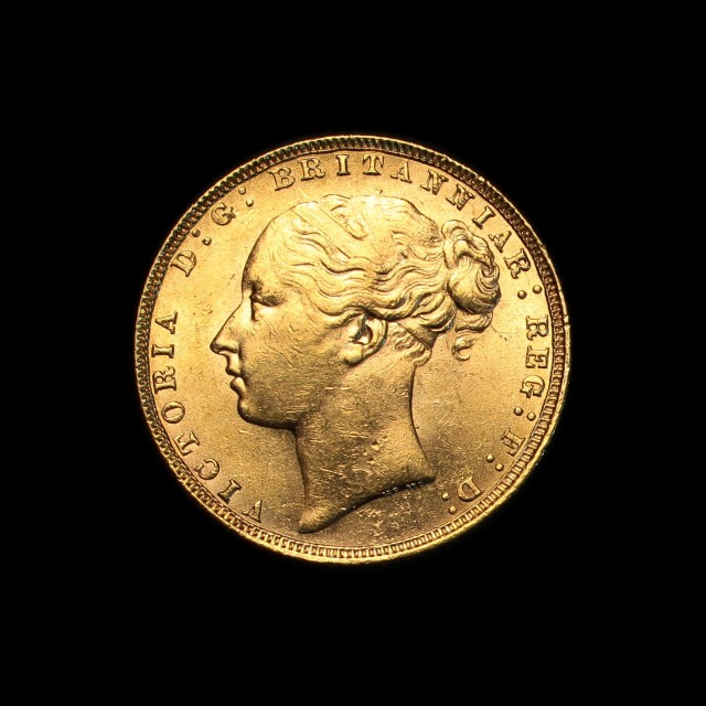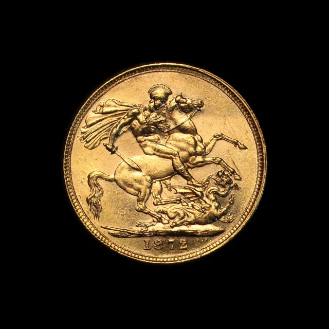 1872, London mint, young head left, rev. St. George slaying dragon, (S.3856A)