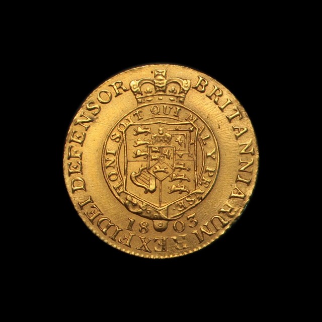 1803, 6th laureate head left, rev. crowned shield in garter, (S.3736)