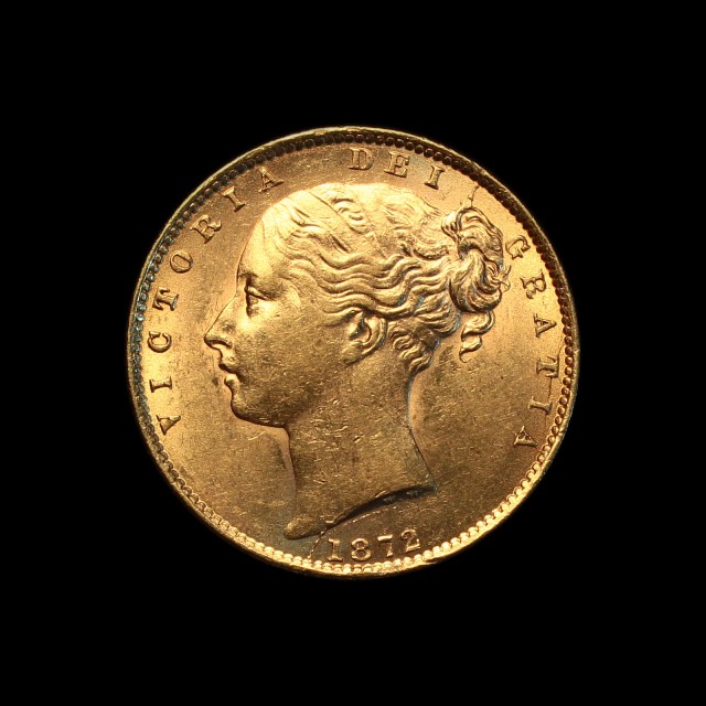 1872, yound head left, date below, rev. crowned shield in wreath, die number 3, (SCBC 3853B)