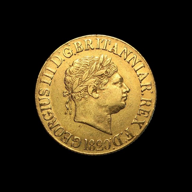 1820, laureate head right, date below with closed 2, rev. St. George slaying dragon within garter, (SCBC 3785C)