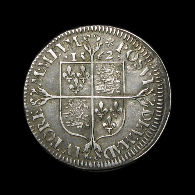 Large broad bust (bust D), mm. star, 1562, 3.11g, (S.2596, N.2027). Die flaw through R of REGINA (not a flan crack), otherwise about very fine.