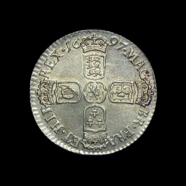 Third bust,1697, later harp, large crowns (S.3538, ESC.1566)