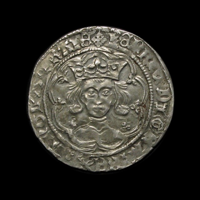 Trefoils on shoulder cusps, trefoil after REX, rev. extra pellets under TAS and DON, double under DON, 3.88g, (S.1910, N.1499). Good very fine and probably much as struck.