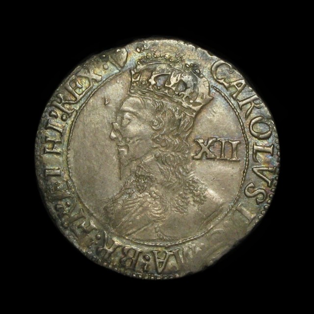 Portrait with falling lace collar, inner circles, R. garnished oval shield with CR at sides, mm. harp, 5.79g (S.2789, N. 2223, Sharp D2/1). Weak area of legend at 5 o'clock but a charming piece with an old even tone, good very fine.