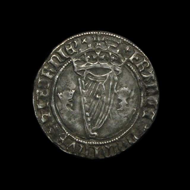 mm.crown, H and I beside harp, 2.30g, (S.6473). Slight weakness of strike, full and nicely tone, about very fine.