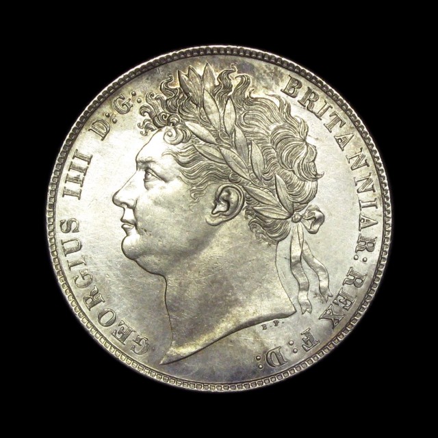 Laur. head, R. crowned shield in garter, 1824, (S.3808, ESC.636)