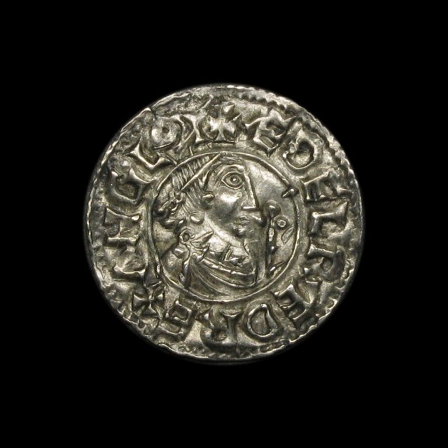 Moneyer Leofric, Obv. +ÆÐELRÆD REX ANGLOX, Rev. +LEOFRIC M-O CÆNT, 1.52g (S.1146, N.768). Light scratch across reverse otherwise deeply struck and good very fine, the portrait better.
