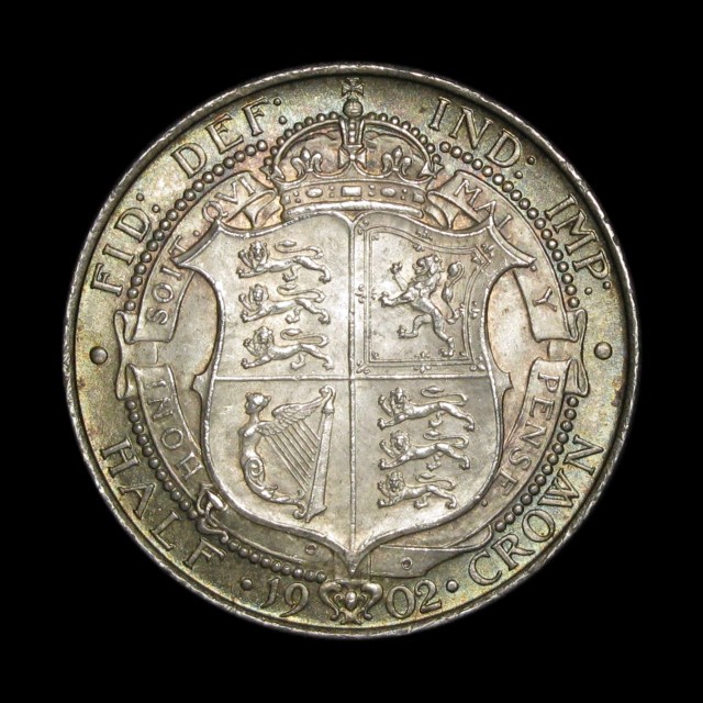 Bare head, 1902, reverse crowned shield in garter (S.3980, ESC.746)