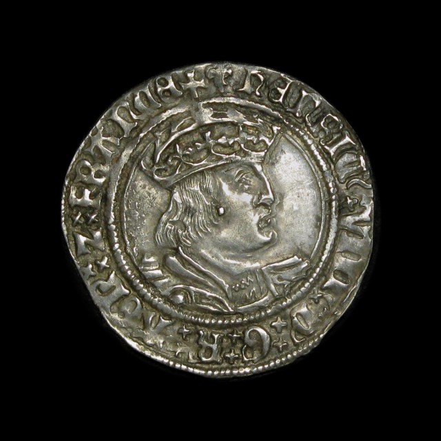Large square face with Roman nose, Lombardic lettering, mm. lis (S.2337E, N1797). A very sharp portrait, nearly extremely fine and much as struck.