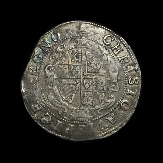 Type 3a1, third horseman, no caparisons on horse, scarf flying from king's waist, rev. oval garnished sheild, mm. bell, 14.78g, (S.2773, N.2209). Quite a full coin for issue, nicely toned and very fine.