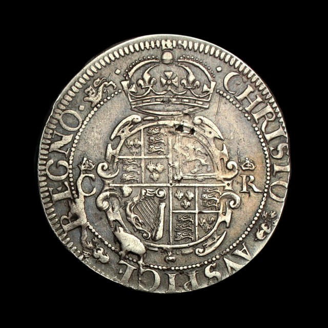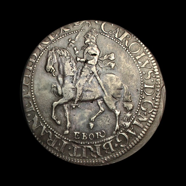 Type 6, mm. lion, 1643-4, king on horseback on tall horse, rev. with oval garnished shield, 14.47g, (S.2868, N.2314, Brooker 1082-1085). Slightly off-centre but with a good horseman, about good very fine.