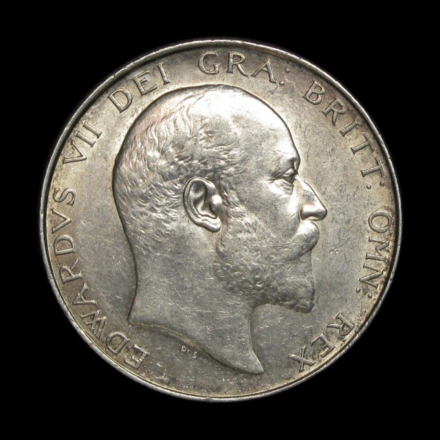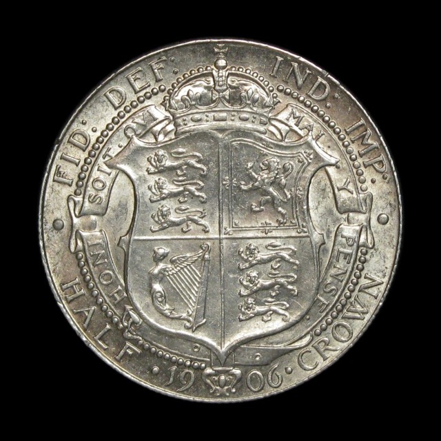 Bare head, 1906, reverse crowned shield in garter (S.3980, ESC.751)