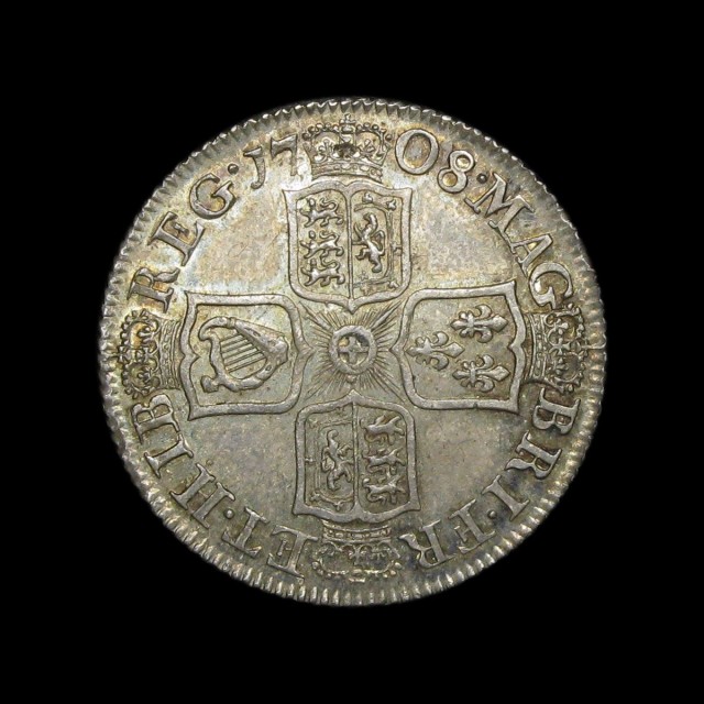 Third bust, 1708, rev. angles plain, (S. 3610, ESC. 1147)