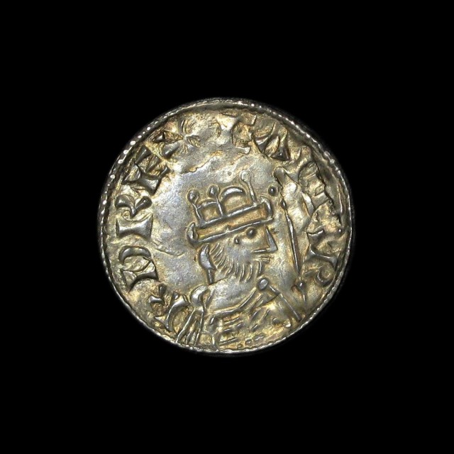 Moneyer Brihtmaer rev. +BRIHTMÆR ON PINE, 1.25g, (S.1158, N.828). Small area of weak strike at 12 o'clock, otherwise nearly extremely fine/good very fine.