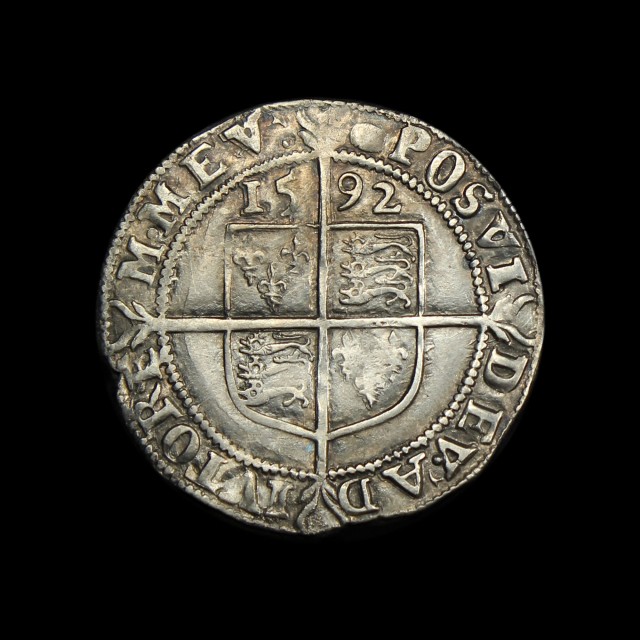 1592, mm. tun, bust 6C, 3.14g, (S.2578B, N.2015). A touch weakly struck at the front of the queen's face, slightly uneven tone, otherwise full and a really good very fine or better.