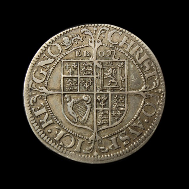 Type 1, bust in scalloped lace collar, rev. square topped shield with EBOR above, mm. lion, 5.83g, (S.2870, N.2316). Nicely toned and good very fine, an attractive example.