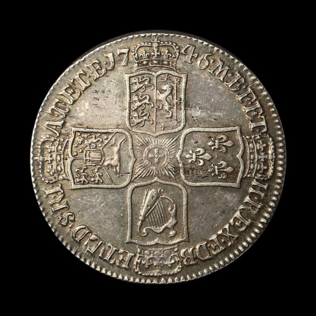 Old bust, 1746, LIMA below bust, GEORGIUS, plain angles rev. edge D.NONO (S.3695, ESC.606))