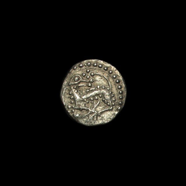 Series N, type 41, two standing facing figures, rev. crested monster l. claws beneath, tail raised, pellet outline, (S.806, N.98). Very fine, the reverse better, scarce.