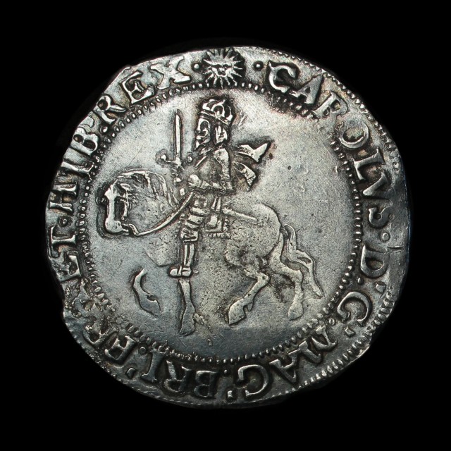 Group III, type 3a3, struck under Parliament, horseman l., no groundline, mm. sun, rev. oval garnished shield, 15.03g, (S.2778, N.2213). A pleasing full coin, strong portrait, good very fine.