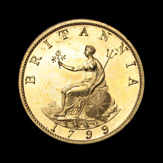 1799, by Kuchler, struck in gilt copper, edge grained, (S.3778, P.1243 KH22). Good extremely fine or better.