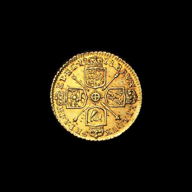 Laureate Head, R. Crowned cruciform shields, sceptres in angles, 1718 (S.3638)