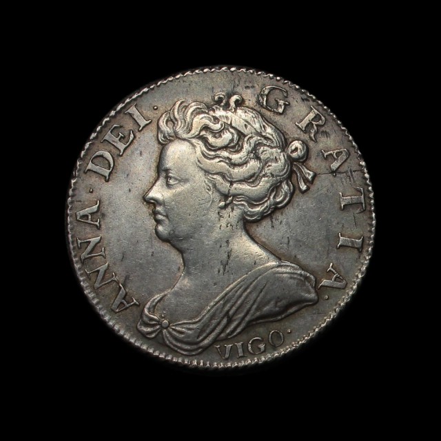 Pre-Union, 1703, VIGO below bust, rev. angles plain, (S.3586, ESC.1131)