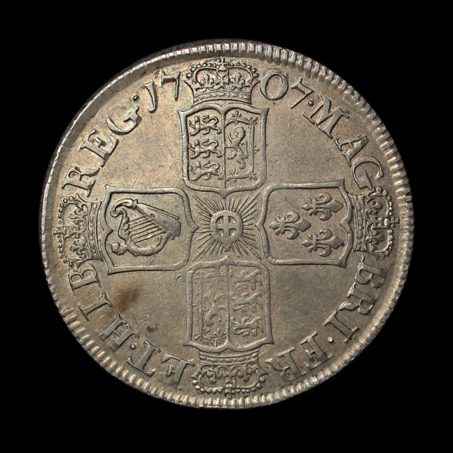 Draped bust, Edinburgh, 1707E, angles plain, edge SEXTO, (S.3605, ESC.575)
