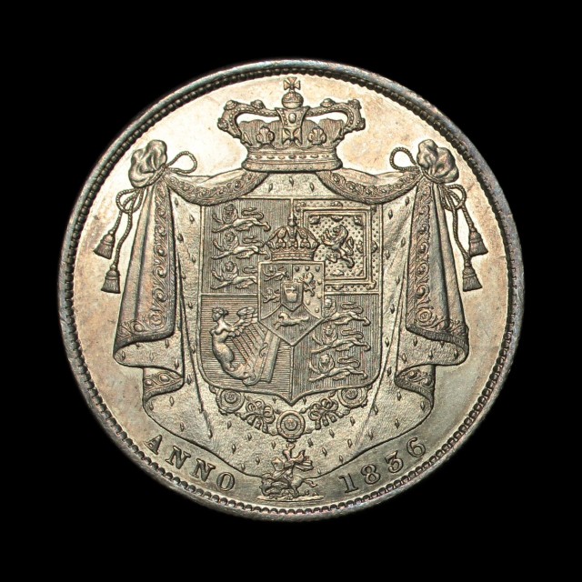 Bare head, WW in script, 1836, rev. shield on mantle (S.3834, ESC.666).