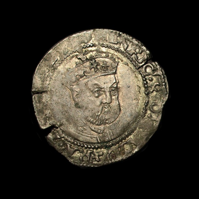 Portrait of Henry VIII, Tower mint, mm. martlet, bust 6, rev. roses in cross ends, 2.44g, (S.2403, N.1871). A few striking cracks, weak in legends, but a strong bust for this late issue.