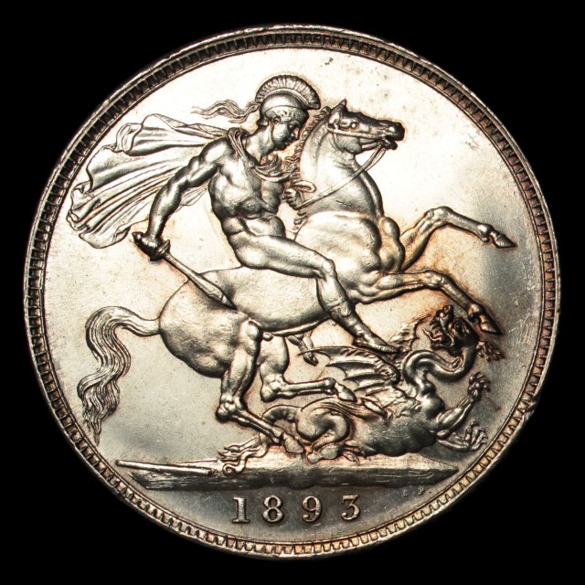 1893, old head, rev. St. George slaying dragon, edge LVI, (S.3937, ESC.303, dies 1A)