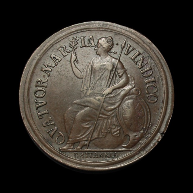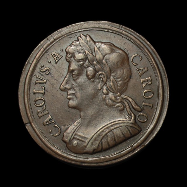 undated, laureate armoured bust left, rev. Britannia seated left, edge plain (BMC 404). Tiny striking split to edge, very fine and rare.