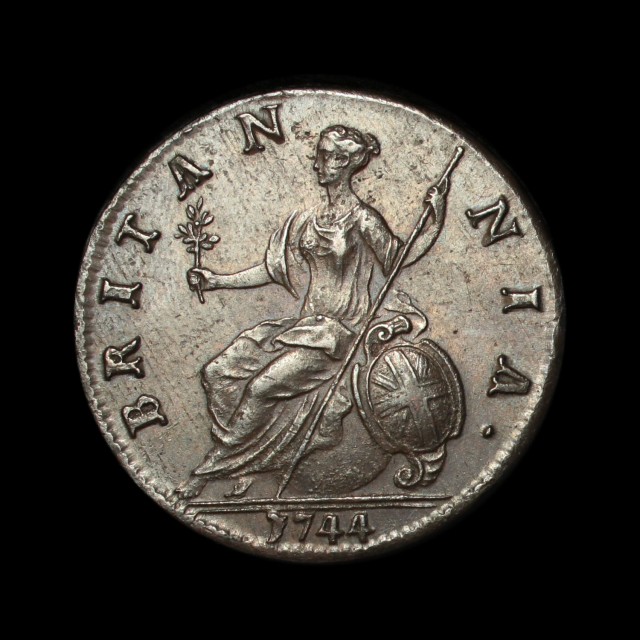 1744, old laureate and cuirassed bust, (S.3718, BMC.874)