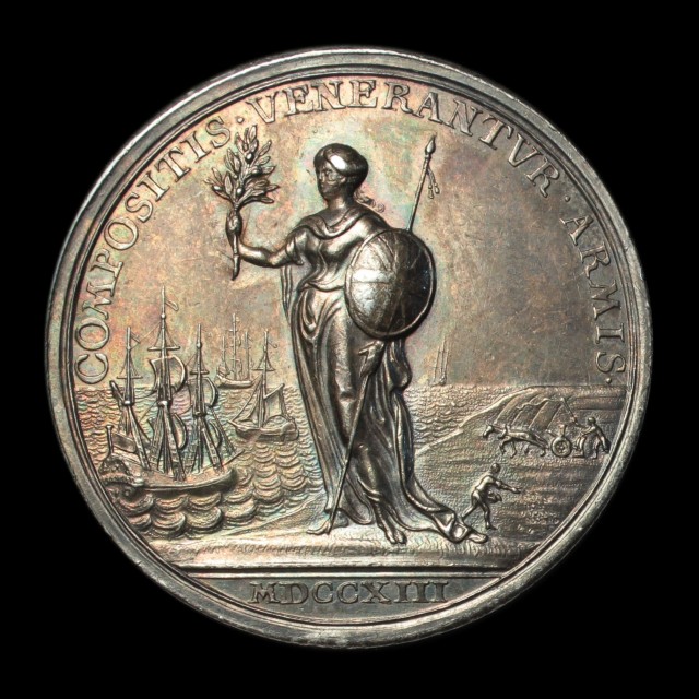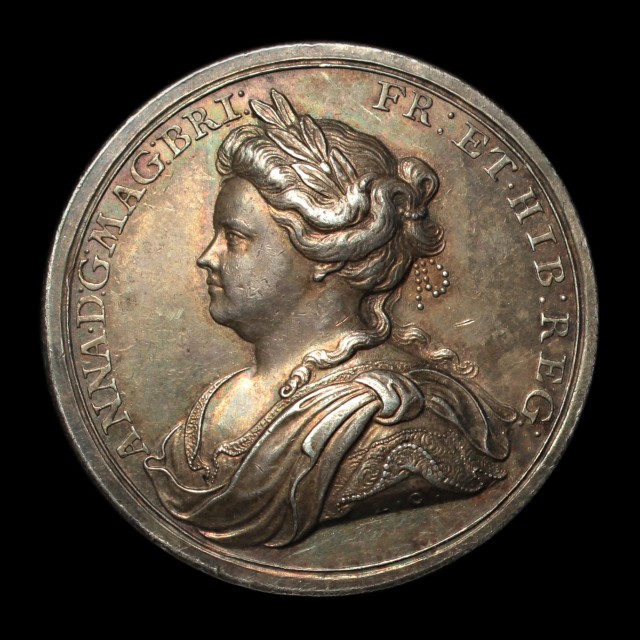Bust of Anne left, rev. Britannia standing, by J. Croker, (E.420, MI ii 400/257). Lightly toned and extremely fine