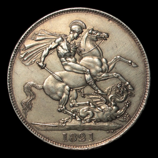 1821, laureate head left, rev. St. George, edge SECUNDO, (S.3805, ESC.2310)