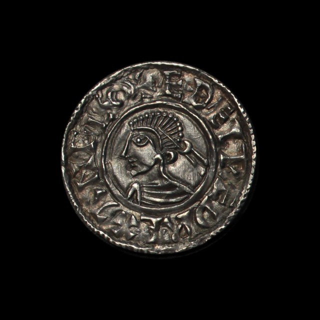 London mint, moneyer Eadmund, obv. +ÆÐELRÆD REX ANGLO, rev. +.EAD.MVND M-ON LVN, 1.37g (S.1154, N.777). A sharp portrait, the reverse with a few peck marks but attractively toned, good very fine or better