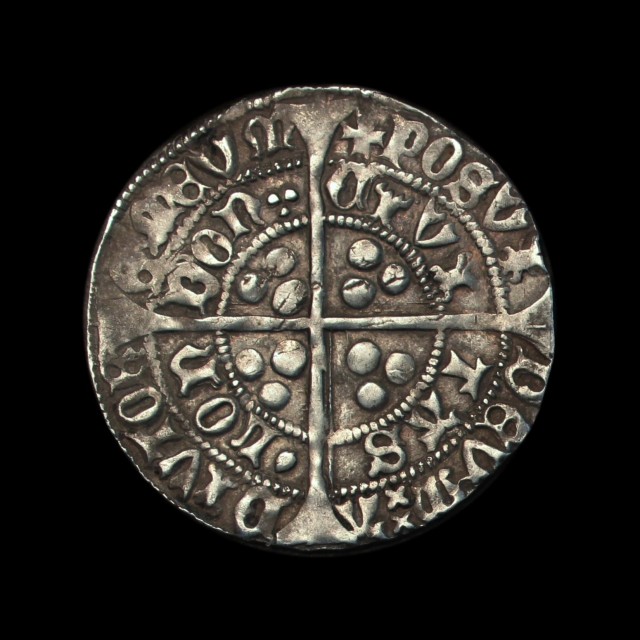 London, class B, no leaf on breast, rev. trefoil after REX, leaf before LON, trefoil after DON, mm.crosses IIIb/V, 3.83g, (S.1898,N.1486). Better than very fine