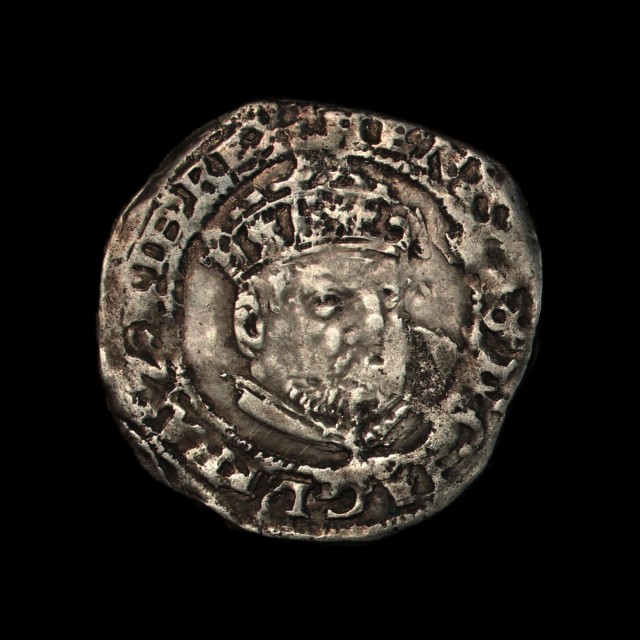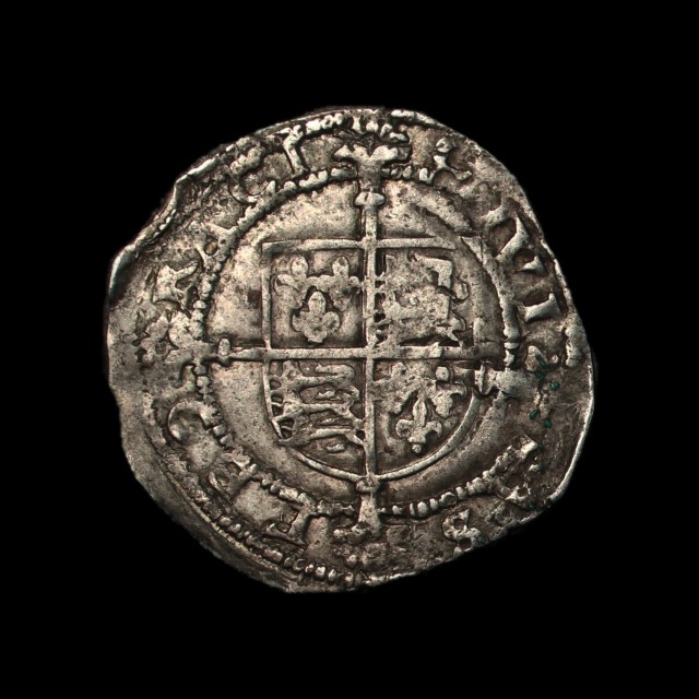 Henry VIII bust 4, no mm., Roman letters, rev. long cross fourchée over shield, roses in forks, 2.30g, (S.2409; N.1876, Stewartby type iv/vi mule). The rarest bust and especially so with this reverse, generally nearly very fine.