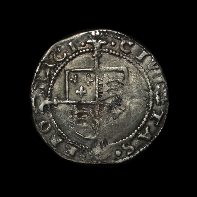 York mint, crowned bust of Henry VIII, bust 5, Roman letters, rev. CIVITAS EBORACI, long cross fourchée over shield, roses in cross ends, no mm, 2.39g, (S.2409, N.1876). Weakly struck in parts as usual for this but nearly very fine for this debased issue