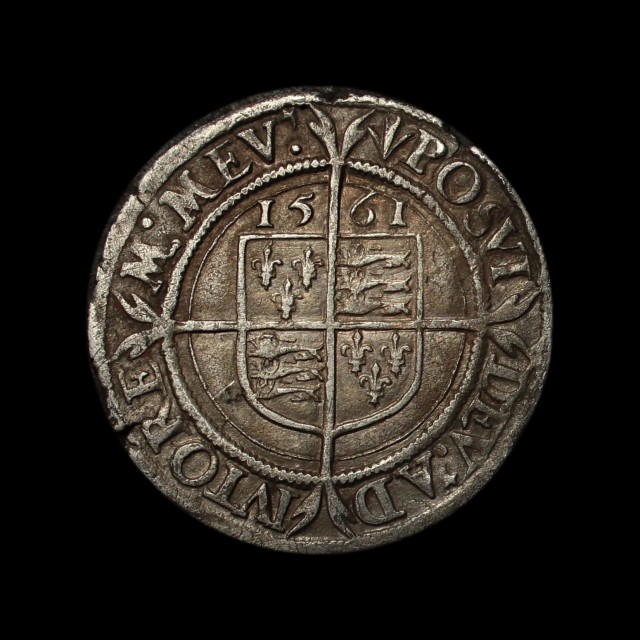 1561, crowned bust 1F left, rev. long cross fourchée over shield, 2.70g, (S.2561, N.1997). slight porous surfaces, struck on a large flan and about very fine