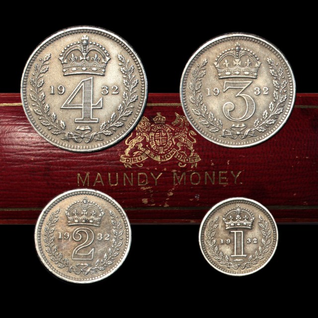 Contained in original case of issue together with order of service from Westminster Abbey dated 24th March 1932, a letter headed paper from the Royal Almonry Office, Buckingham Palace stating 'With the Assistant Sectretary's Compliments', and a booklet entitled 'The Royal Maundy' dated 1936 and describing and outline of the Royal Maundy. The coins extremely fine, the case a little worn but solid, the paperwork in a good clean state