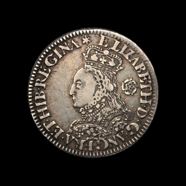 Large decorated bust left (bust D), Tudor rose behind, 1562, mm.star, 3.09g, (S.2596, N.2027). Nearly very fine, the reverse better.