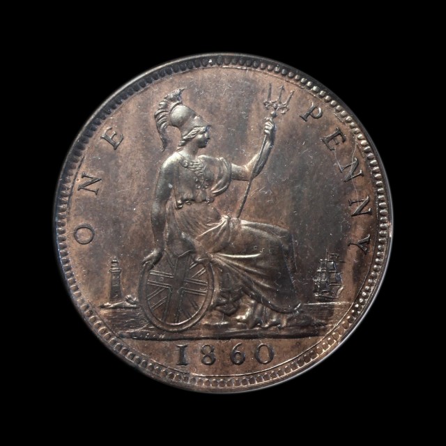 1860, 'bun head' left, rev. Britannia seated, dies 2 + D, (S.3954)