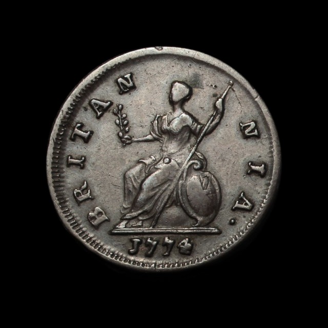 1774, laureate head right (obv. 1), rev. Britannia seated, date below, (S.3775, Peck 915)