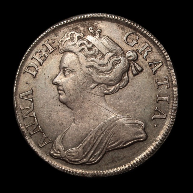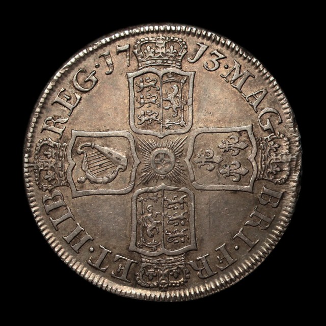 1713, draped bust left, rev. crowned cruciform shields, angles plain, edge DVODECIMO, (S.3604, ESC.1376)