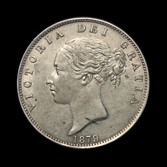 1879, yound head left, date below, rev. crowned shield in wreath, (S.3889, ESC.2753)