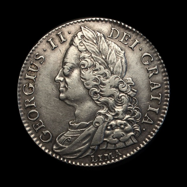 1746/5, old laureate head left, LIMA below, rev. crowned cruciform shields, angles plain, edge D. NONO, (S.3695, ESC.1689)